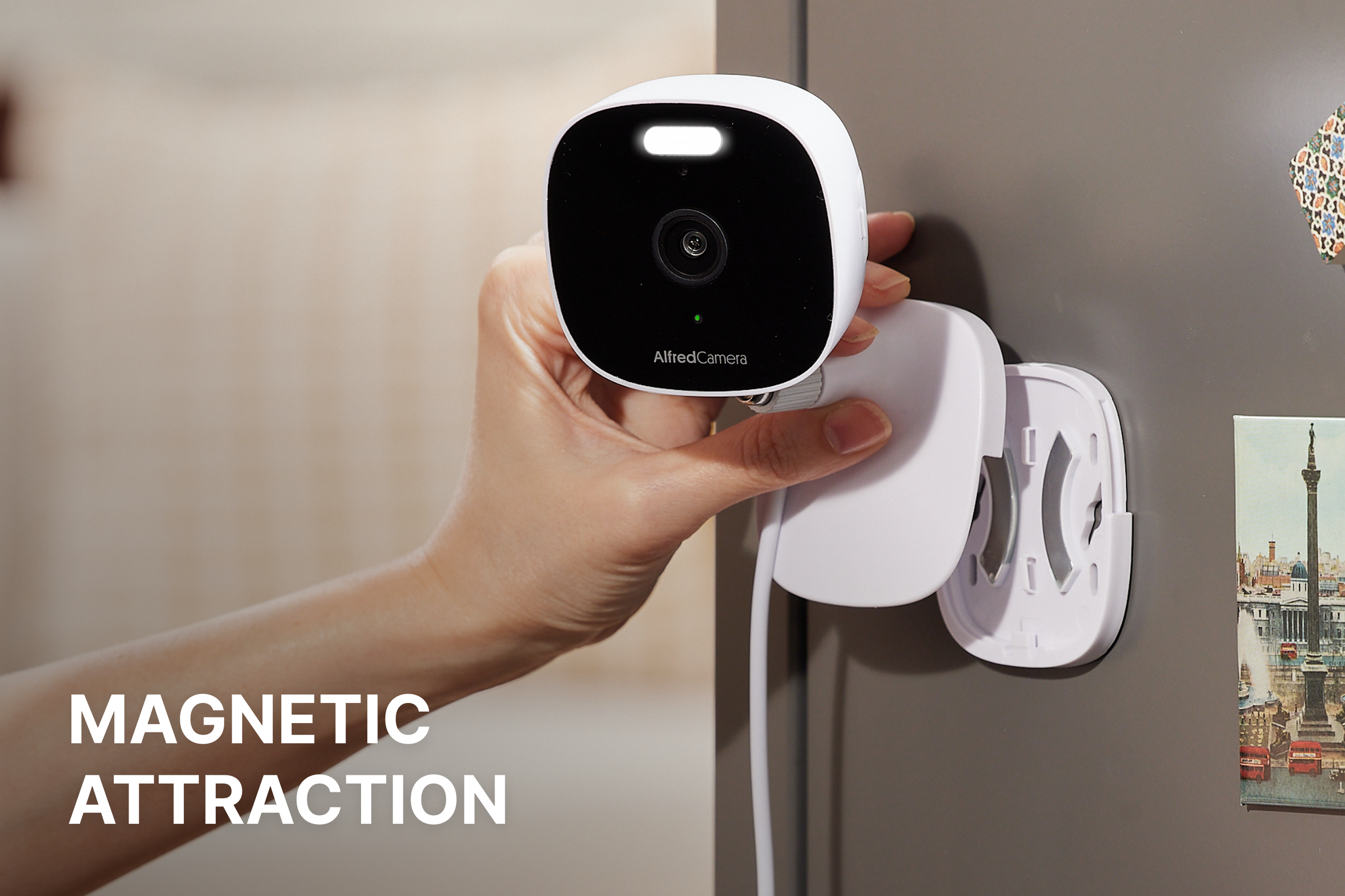 Installation: Can be placed flat or mounted on vertical surface. Freely choose to place your AlfredCam on the table, wall or ceiling.