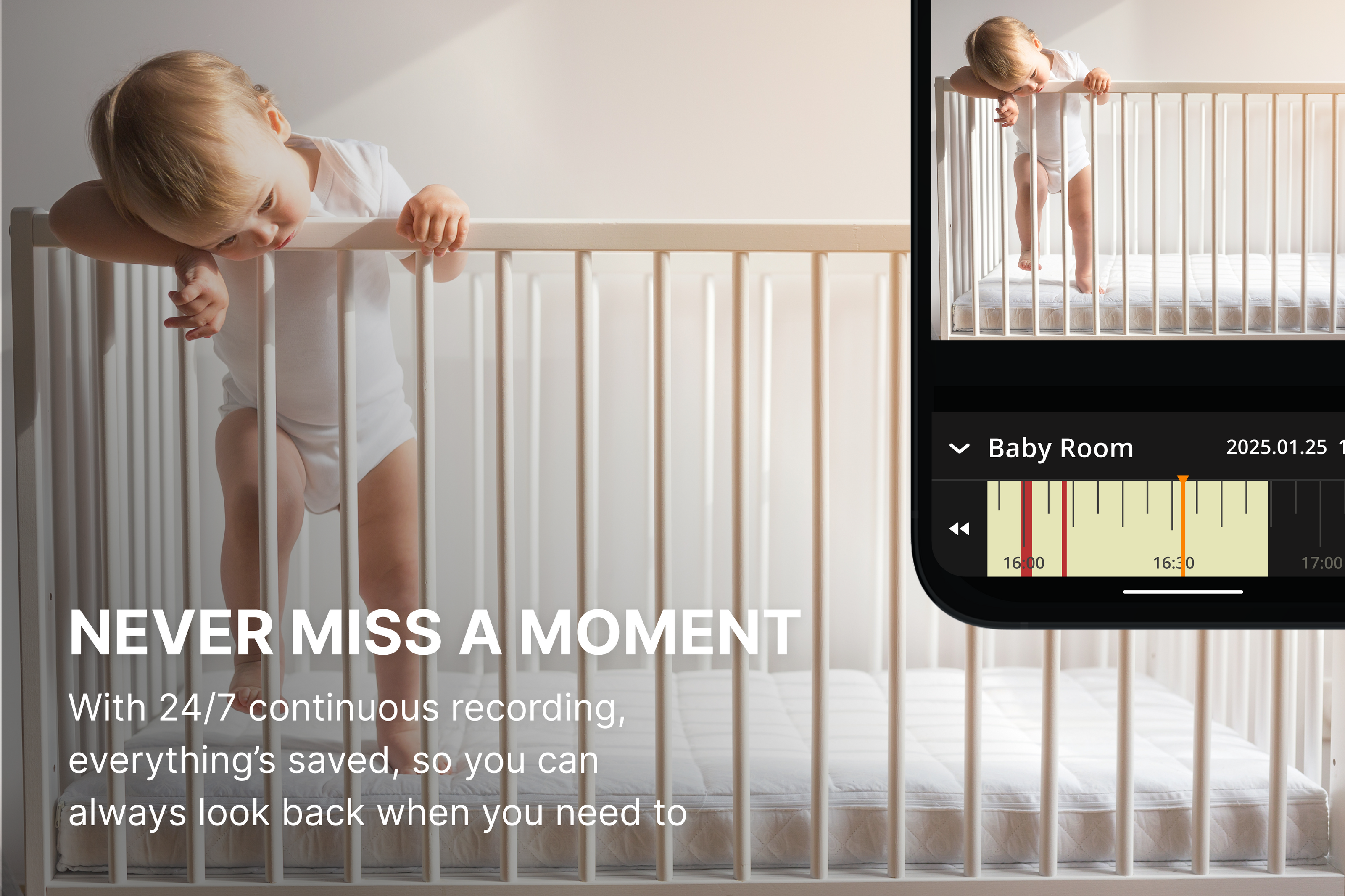 Record continuously without missing any important moments (MicroSD card required, playback feature** is only available in the AlfredCamera APP premium plan)
