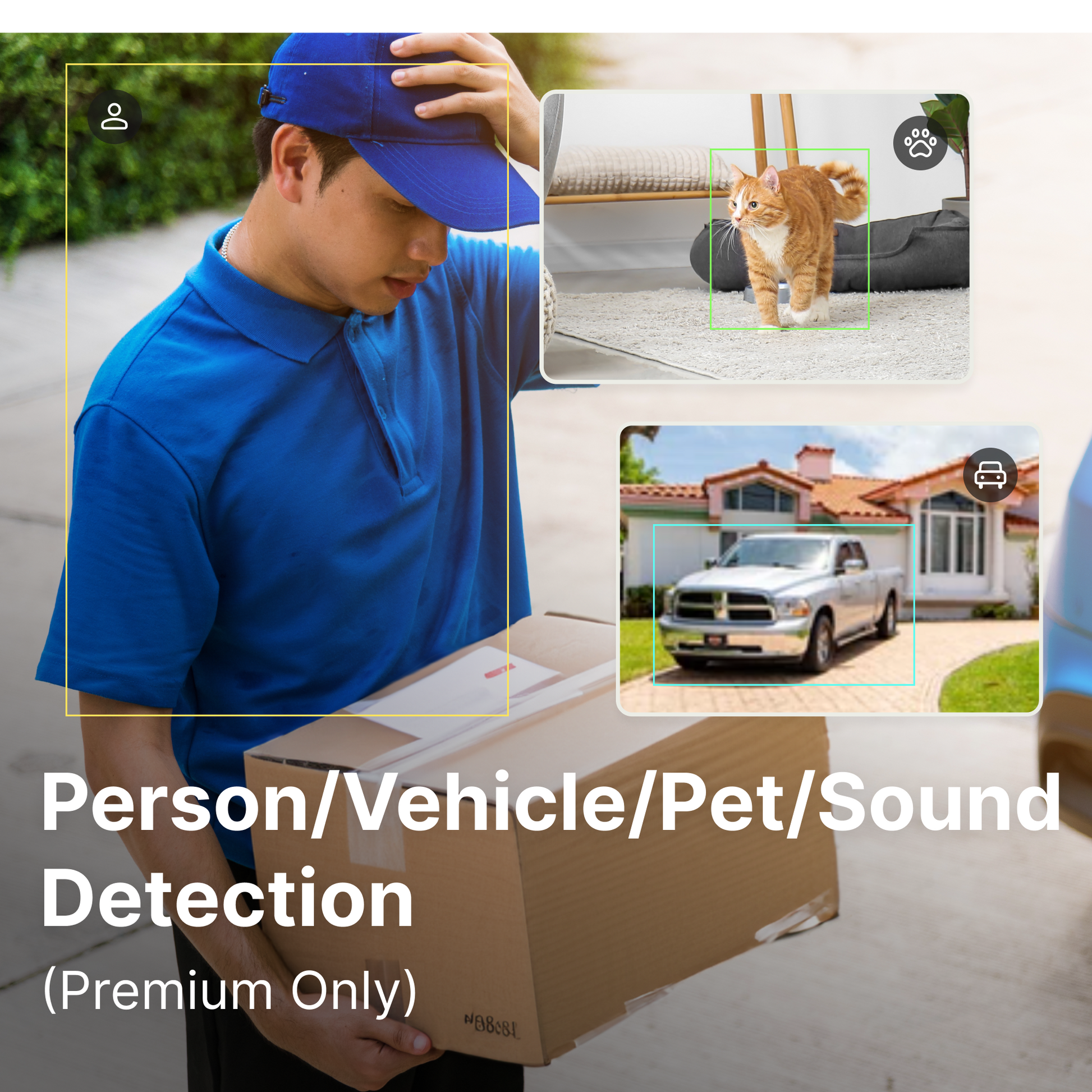 - AI Motion Detection for people, pets & vehicles (with Premium)