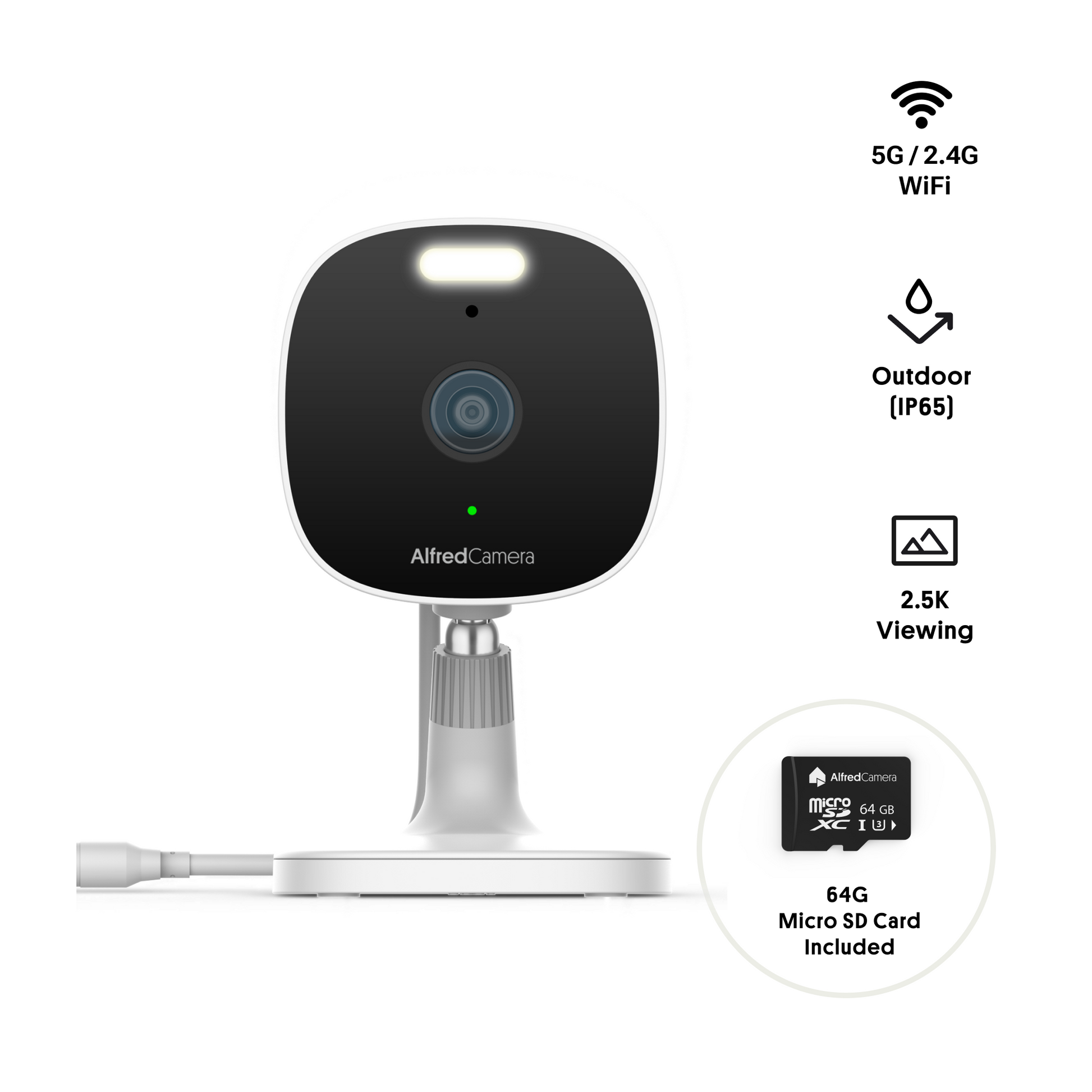Get 2.5K ultra-clear video, intelligent alerts, and a built-in LED spotlight to stop threats in their tracks. Whether it’s your front door, driveway, or backyard, AlfredCam keeps you connected and protected 24/7.